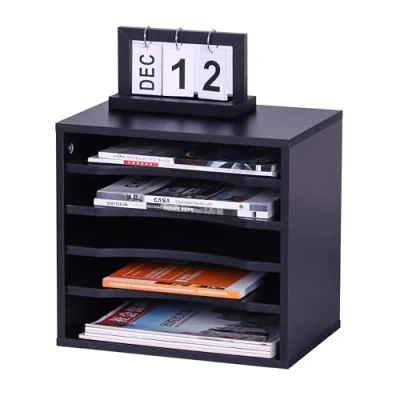 AmazonPractical: Black document holder for letters, papers, magazines and more – office & home office Sturdy: Modern paper organiser made from durable PB - shelves are easily removable Design: Tall office organiser enhances workspace structure – tidiness for improved focus Details: Stable document holder due to its heavy weight - Floor protectors - Easy to assemble Compartments: Desk organiser with 5 sections for A4 files – dimensions: approx. 33 x 35.5 x 25 cm