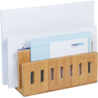 Relaxdays Document Holder Bamboo, 3 Compartments, Practical Letter and File Rack, Office, HWD: 13 x 18 8 cm, Natural