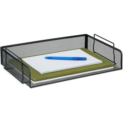 AmazonOrder: Horizontal letter tray for formats up to DIN A4 - Dimensions: H x W x D: 8.5 x 36 x 25 cm Storage: Large document tray for letters, paper, books, magazines, etc. - For the office & home Stackable: Several trays can be stacked on top of each other if desired - For files or notebooks Timeless: Storage system in trendy mesh design - Lightweight metal mesh with wavy surface Smart: Practical document organiser for clear storage of documents within easy reach
