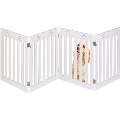 Relaxdays Dog Barrier Fence, 4 part, Free standing, Stair Gate Protection, HxW: 60 x 204 cm, Foldable, Safety, White, Fibreboard, 2 cm