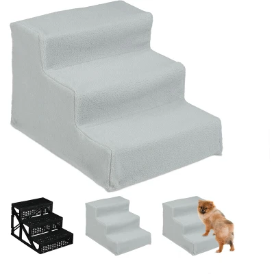 Relaxdays Dog Stairs, 3 Steps, Large & Small Pets, Access Ramp, Climbing Aid Couch, Cover, 30x35x45 cm, Grey, PP, polyester, Gray, Pack of 1