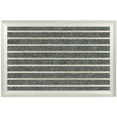 AmazonDesign: Doormat made of aluminium and grey plastic bristles - simple look blends in well Non-slip: The doormat with rubberised underside offers a secure grip on all surfaces Universal: Square shoe mat for indoor or outdoor use - dirt mat for home and garden Practical: Dirt-trapping mat with bevelled edges reduces the risk of tripping when stepping on it Dirt trap: No dirt or shoe marks in the home - simply vacuum the rug for cleaning