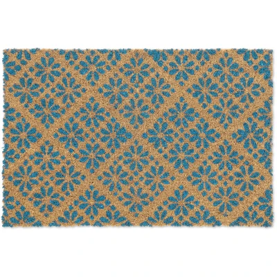Relaxdays Doormat Coir Floral Pattern, 40 x 60 cm, Door Mat Inside & Outside, Non Slip Wiper, Rectangular, Blue/Coir