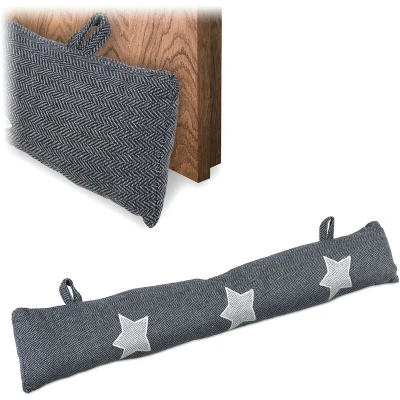 AmazonPractical: Draught excluder against wind and cold - Prevents cold from entering through the door gap Versatile: Cold stopper is suitable for sealing windows and doors - Also house and balcony doors Freely positionable: Place the draught roller in front of the door - No gluing, drilling or screwing Optics: Doors draught stopper convinces visually with great stars - Turn over for neutral design Details: Door draught excluder made of soft fabric - HxWxD: approx. 10 x 76 x 7 cm - Weight: 1 kg