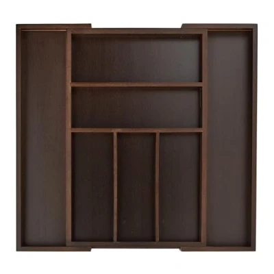 Relaxdays Extendable Cutlery Tray, var. Width, 5 7 Compartments, Bamboo Organiser, HBT: 5x48x46cm, Dark Brown