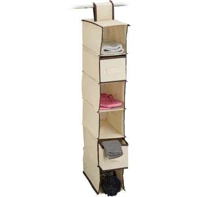 Relaxdays Fabric Hanging Shelves, 6 Compartments with 2 Drawers For The Closet, Foldable, Size: 82 x 14.5 30 cm, Beige