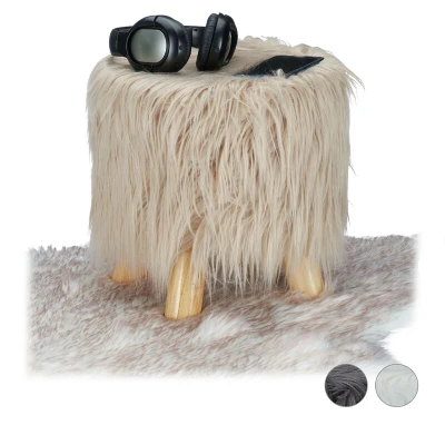 General description If you seek to enrich your home with a decorative highlight, this Relaxdays Faux Fur Stool is just what you need. Its long and fluffy faux fur is reminiscent of a shaggy pet that just loved to get stroked. This padded stand is an ideal seat for kids, adding a touch of comfort and style to any room. Technical specifications Total dimensions: 31 x 31 cm (H x D) Maximum capacity: 80 kg Materials: Pine wood, MDF, polyester Weight: 1.7 kg Other information 4 wooden legs made of natural pine ensure firm footing and are equipped with floor protectors to prevent scratches. Various colours available. Included in delivery: 1 x Faux Fur Stool (decorative items shown in product photos are not included).