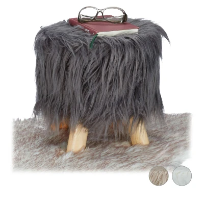 General description If you seek to enrich your home with a decorative highlight, this Relaxdays Faux Fur Stool is just what you need. Its long and fluffy faux fur is reminiscent of a shaggy pet that just loved to get stroked. This padded stand is an ideal seat for kids, making it a versatile addition to your living space. Technical specifications Total Height x Diameter: 31 x 31 cm Maximum capacity: 80 kg Materials: Pine wood, MDF, polyester Weight: 1.7 kg Other information 4 wooden legs made of natural pine ensure firm footing and are equipped with floor protectors to prevent scratches. Various colours available. Included in Delivery: 1 x Faux Fur Stool (decorative items shown in product photos are not included).