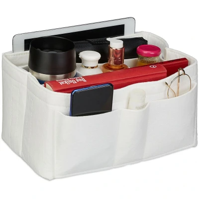 Relaxdays, Felt, Many Compartments, Handbag Organiser, Storage Bag, Portable, Removable, Size L, White