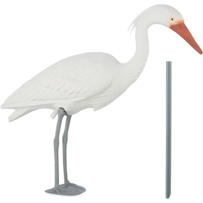 Relaxdays figure deterrent garden and pond, outdoor fish heron, for plugging, decorative bird, white, 100% plastic, 1 item