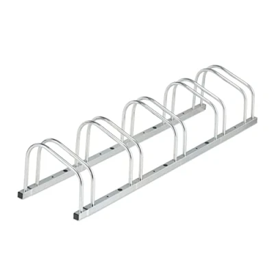 AmazonPractical: Bicycle holder for secure storage of bicycles - Incl. mounting materials for floor Multiple bike rack: This parking stand has space for 5 bicycles - For mountain bikes, e-bikes etc. Robust: The silver bike stand is made from galvanised steel - Weatherproof material for outdoors For the floor: Bike rack for garage, cellar or hallway - Can also be used outdoors Basics: Floor bike rack H x W x D: 26 x 136 x 33.5 cm - For wheel width of max. 50 mm
