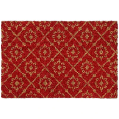 Relaxdays Floral Pattern Door mat Doormat Coir Welcome, 40 x 60 cm, Inside & Outside, Non Slip Shoe Wiper, Red/Brown