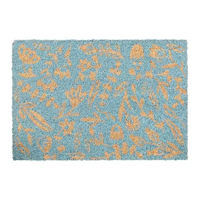 Relaxdays Flowers Theme Welcome Doormat Coir, 40 x 60 cm, Door Mat Inside & Outside, Non Slip Shoe Wiper, Blue