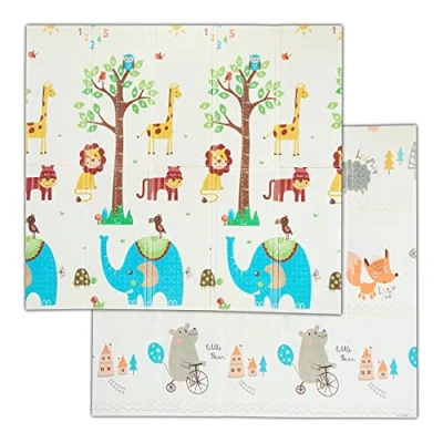 AmazonDouble-sided: Floor mat with cute motifs on both sides - With forest and jungles animals For children: Colourful children's mat for boys and girls - Perfect as a crawling mat for babies Safety: Play mat made of foam and PVC is free of substances of concern - Great play experience Durable: Shock-absorbing crawling mat against walking noise and coldness of the floor - Easy to wash Practical: Children's play mat can be folded up and stowed away to save space when not in use