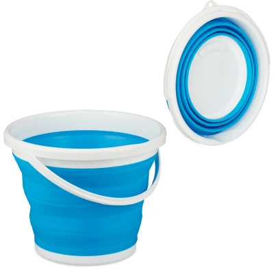 AmazonCollapsible: Handy folding bucket with 10L capacity - Only approx. 5 cm high when folded Blue version: Collapsible bin in bright, friendly blue-white - Made of sturdy and flexib Handy: Bucket with wide handle and rim - Extra grip on the bottom - With useful hanging loop Versatile: Mopping bucket for small apartments, to clean your car on the road or camping Basics: H x W x D approx. 24.5 x 33 x 34.5 cm - Weighs only approx. 500 g - Made of PP and TPE
