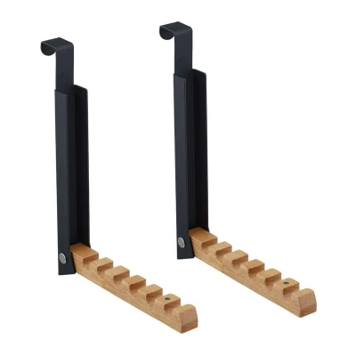 Relaxdays Folding Hook, Set of 2, for Hanging, 6 Coat Hangers, Metal & Wood, 2 cm Door Thickness, Black, Iron, 21 x 2.5 18