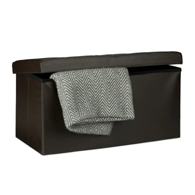 Relaxdays Folding Storage Bench Large Seat, Faux Leather, 38 x 78 cm, Foldable Footstool Ottoman with Removable Lid, Brown