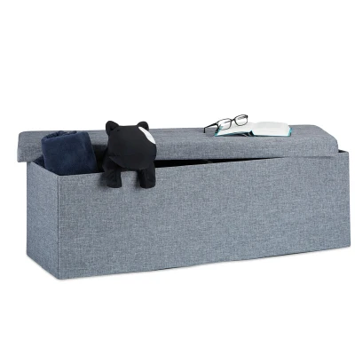 Relaxdays Folding Storage Bench XL, 38 x 114 cm, Foldable Ottoman Footstool, with Lid, Fabric, Dark Grey