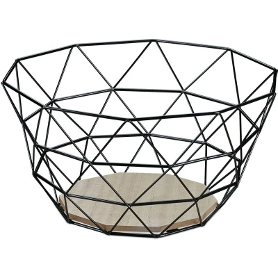 General description The Relaxdays Fruit Bowl is a decorative wire basket designed to enhance the presentation of fruits and vegetables. With its industrial design, this bowl not only serves as a functional item but also as an eye-catching piece that complements various interior styles. It is perfect for serving fresh fruits at gatherings or for displaying bread and rolls at breakfast. Technical specifications Total size (H x W x D): approx. 14.5 x 28 x 28 cm Wire thickness: approx. 2-3 mm Weight: approx. 300 g Material: Iron, wood Usage Ideal for storing and displaying fruits and vegetables with good air circulation. Can be used as a bread basket by placing a fabric napkin inside. Perfect for serving guests at buffets or dining tables. Other information Available in various colors. Included in delivery: 1 x metal fruit basket (decorative items not included).