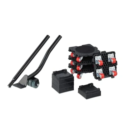 Amazon MarketplacePractical: Furniture lifter, transport castors and height adjuster for easy moving of furniture Robust: transport rollers for heavy items up to 300 kg - Strong leverage from the long lifter Clever: Furniture mover's dolly with 360° wheels for tight spaces - Connectable for more surface Height adjuster: Set includes 4 stackable attachments for tailored height adjustment of furniture Versatile: Furniture trolley is perfect for renovations, moving, cleaning and rearranging tasks