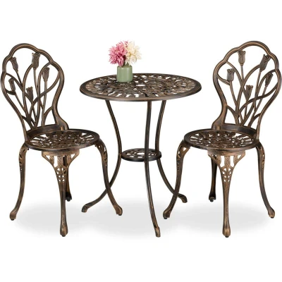 Relaxdays Garden Bistro Set, 3 Piece, Table & 2 Chairs, Antique Style, Patio Furniture, Outdoor Dining, Black/Bronze, Aluminium, 67 x 60 cm