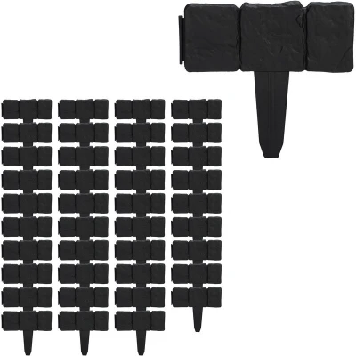 Relaxdays Garden Edging, 40 Piece Set, Flowerbed Lawn Border, Stone Effect, HxW: 10x25 cm, Push In, Black