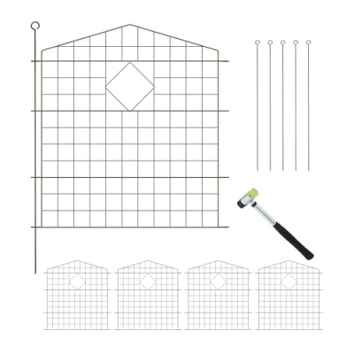 Relaxdays Garden Fence, 5 Panels, HxW: 78x75 cm Each, Arch, Pond Border, Flowerbed Edging, Push In, Metal, Brown