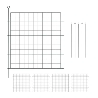 General description With this versatile wire fence, you can surround your garden pond or create clear boundaries between beds, green areas, paths, and borders. The robust push-in fence set is made of powder-coated metal, making it durable and suitable for various garden applications. Technical specifications Dimensions per fence element: H x W x D: approx. 78 x 75 x 2 cm Total length: approx. 370 cm Length of each fixing rod: approx. 100 cm Weight per fence element: approx. 1 kg Material: Steel Usage Ideal for pond edging or creating clear boundaries in the garden Suitable for flower beds, borders, and other green areas Can also be used as a pool, puppy, or small animal fence