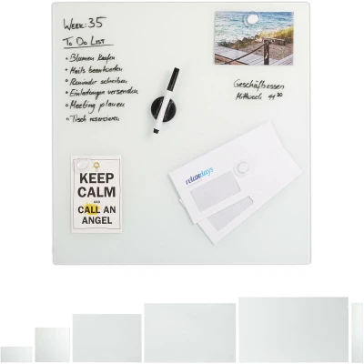 Relaxdays Glass Magnetic Dry Erase Memo Board, Writable, 3 Magnets, Safety Magnet White