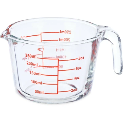 Relaxdays Glass Measuring Jug, 250 ml, Heat Resistant, Microwave Safe, Milliletres, Ounces & Cups, Transparent, 100%