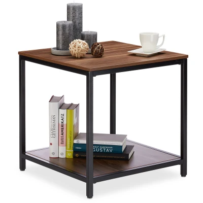 AmazonStand: Elegant side table for any room - Handy stand with metal frame for magazines, flowers and more Beautiful: Modern deco stand with striking metal cube frame - A sturdy tray for any occasion 2 Tabletops: MDF tiers with a melamine coating that boasts a natural wooden grain Multipurpose: As coffee table in your living room, telephone stand in your hallway or office magazine tray Flat: Modern side table HxWxD: 51 x 50.5 x 50.5 cm - Max. capacity 70 kg