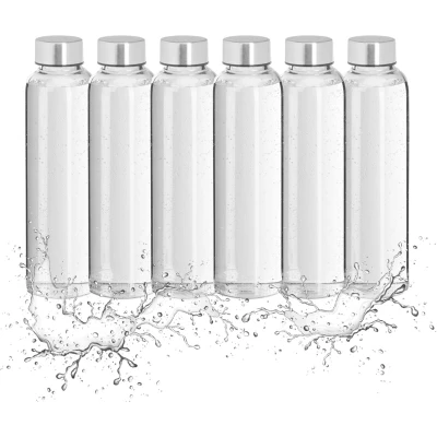General description This set of 6 glass water bottles is designed to help you transition towards a more sustainable lifestyle by replacing disposable plastic bottles. Made from strong borosilicate glass, these bottles are leakproof, refillable, and resistant to both heat and cold, making them perfect for a variety of beverages such as water, smoothies, juice, or lemonade. Each bottle comes with a stainless steel lid and a fabric holder, making them practical for sports, travel, or everyday use. Technical specifications Bottle size (H x D): approx. 23.5 x 6.5 cm Holder size (H x D): approx. 18 x 7 cm Opening diameter: approx. 3 cm Capacity: approx. 500 ml Weight: approx. 320 g Material: Borosilicate glass, stainless steel, neoprene Colors: Transparent/black Temperature resistance: -20 to 150°C Included in Delivery 6 x Drink Bottles 6 x Holders Decorative items shown are not included