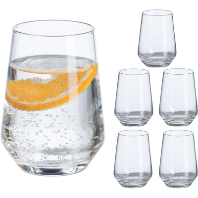 Relaxdays Glasses, Set of 6, Tumblers for Water, Juice & Soft Drinks, Dishwasher Safe, 390 ml, Transparent