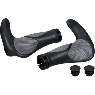 Relaxdays Grips, Pair, Ergonomic, Plastic & Rubber, Ø 22mm, Bicycle Handlebar Covers, MTB, Scooter, Black/Grey, 22 mm