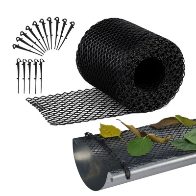 General description With the Relaxdays gutter leaf guard, you can save yourself the hassle of cleaning your rain gutters. This effective gutter protection system prevents leaves, twigs, and other debris from clogging the gutter, ensuring unobstructed rainwater drainage. The gutter cover and clips can be cut to size, allowing for individual adaptation to your needs. Technical specifications Length: approx. 6 m Width: approx. 15 cm Clips dimensions (H x W): approx. 16 x 3 cm Can be shortened to approx. 12 and 14 cm Material: plastic Colour: black Installation Quick and easy installation with supplied mounting clips No gluing or drilling required Usage Prevents clogging from leaves Ensures unimpeded rainwater drainage Saves time on gutter cleaning Other information Included in the delivery: 1x gutter grille, 15x fastening clips Decorative items are not included in the delivery
