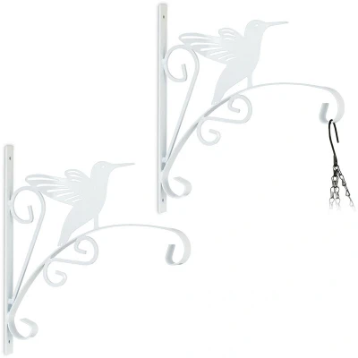 Relaxdays Hanging Basket Brackets, Set of 2, Bird Design, Wall Mounted, 30 x 29.5 2 cm, Plant Hanger, Iron, White
