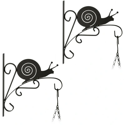 AmazonSet of 2: Wall-mounted hangers for plants and flowers - 2 hanging basket brackets for the garden Design: Plant hangers with swirls and snails - Hanging basket brackets for indoors & outdoors Decorative: Black plant hooks can also be used for wind chimes, lanterns and flower wreaths etc. Wall brackets: The lantern hooks can easily be attached to the wall - Dowels and screws are included Details: Hanging basket brackets made from iron - Total size H x W x D: approx. 30 x 30.5 x 2 cm