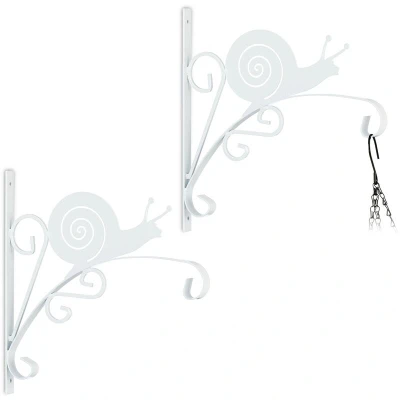 Relaxdays Hanging Basket Brackets, Set of 2, Snail Design, Wall Mounted, 30 x 30.5 2 cm, Plant Hanger, Iron, White