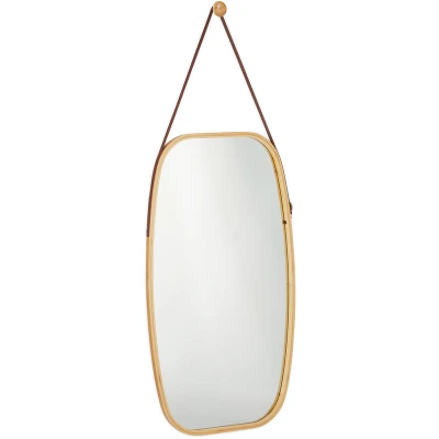 Relaxdays Hanging Mirror, Bamboo Frame, Adjustable Strap, Oval Wall Modern, Hallway, Bed & Living Room, Natural