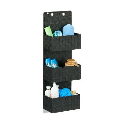 Relaxdays Hanging Wall Organizer, Magazine Rack with 3 Compartments, Plastic, HWD: 75x25x15cm cm, Black