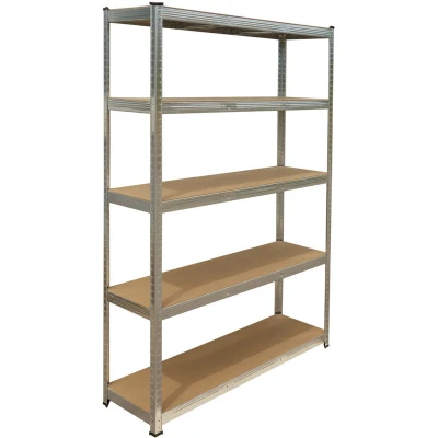 AmazonSpacious Steel and MDF storage rack for garage, cellar etc. - Space for tools, beverage crates, more Sturdy: Galvanised steel shelving, 5 shelves - approx. 175 kg per shelf - various sizes Flexible: Customisable tall shelving with adjustable shelf heights - Can be split into two units Versatile: pantry shelf – tyre rack for garage – heavy-duty shelf for garden tools Simple: Easy slot-together shelving - Assembles by slotting - No screws or drilling