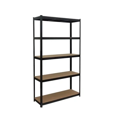 Spacious heavy-duty steel & MDF shelving for garage, cellar & more - stores tools, tyres, drinks. Sturdy black shelving unit, 5 shelves – approx. 175 kg per shelf – HxWxD: 200 x 120 x 40 cm Versatile: Assembly parts for 1 tall rack or 2 cellar racks (each 100 cm) – simply split in half Practical: the sturdy cellar shelf fits small rooms and niches, optimising space. Simple: Easy push-fit shelving - assemble by slotting together - no screws or drilling