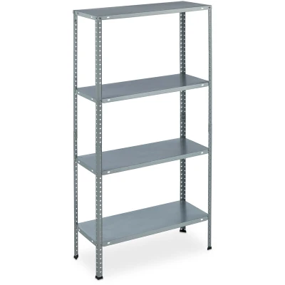 General description The Relaxdays Heavy Duty Shelving Unit is designed for versatile storage solutions, providing ample space for organization in various settings such as cellars, workshops, pantries, kitchens, and bathrooms. With four sturdy shelves, it is ideal for storing tools, cleaning products, food, drinks, and more, helping you keep everything in sight while saving space. Technical specifications Dimensions (H x W x D): approx. 145 x 75.5 x 30 cm (57.1 x 29.7 x 11.8 in.) Weight capacity: approx. 160 kg Weight capacity per tier: approx. 40 kg Size per compartment (W x D): approx. 75 x 30 cm (29.5 x 11.8 in.) Weight: approx. 4.7 kg Material: Galvanised steel, plastic Colour: Silver Compatibility and accessories Includes 1 x Shelving unit to be assembled 4 x Floor protectors Assembly material and instructions Decorative items are not included in delivery Installation The shelving unit can be easily assembled in seconds by simply screwing the parts together. The three lower