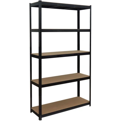 AmazonSpacious steel and MDF storage rack for garage, cellar and more - ideal for tools, crates and drinks Sturdy: Black shelving unit with 5 shelves - Approx. 175 kg per shelf - Various sizes available Versatile: fittings for 1 tall unit or 2 low cellar shelves – simply split in half Practical: sturdy cellar shelving fits small rooms and niches – optimises space. Simple: Easy push-fit shelving - Assemble by slotting together - No screws, no drilling