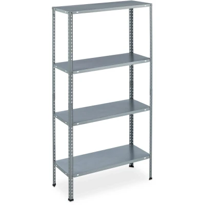 General description The Relaxdays Heavy Duty Shelving Unit is designed for versatile storage solutions, providing ample space for organization in various settings such as cellars, workshops, pantries, kitchens, and bathrooms. With four sturdy shelves, this unit is perfect for storing tools, cleaning products, food, drinks, and more, helping you keep everything in sight while saving space. Technical specifications Dimensions (H x W x D): approx. 145 x 75.5 x 30 cm (57.1 x 29.7 x 11.8 in.) Weight capacity: approx. 160 kg Weight capacity per tier: approx. 40 kg Size per compartment (W x D): approx. 75 x 30 cm (29.5 x 11.8 in.) Weight: approx. 4.7 kg Material: Galvanised steel, plastic Colour: Silver Installation The heavy-duty shelving unit can be easily assembled in seconds by simply screwing the parts together. The three lower shelves can be adjusted and attached at various heights according to your needs. Usage This shelving unit is ideal for use in various environments, including