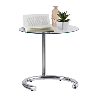 AmazonOn-hand: Thanks to this side table, you have smartphone, snacks and laptops in close reach Versatile: Coffee and tea table for your balcony - Living room side table - Modern nightstand Height-adjustable: Decide the optimal height for yourself - App. app. 45 cm to 70 cm tall Timeless design: The tabletop is made of clear tempered glass and perfectly matches the chromed steel Handy: Slide the table underneath your couch to directly use it while relaxing