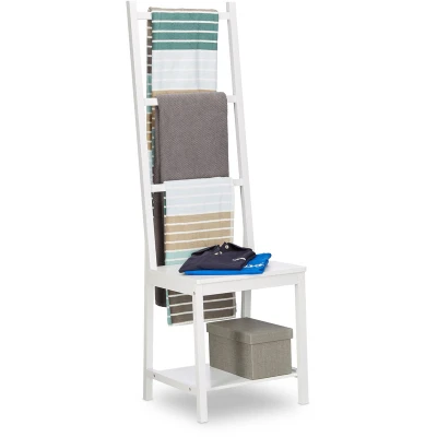 Relaxdays Holder, Clothes Stand, Towel Rack, Valet Butler, Bathroom Chair, Bamboo, HxWxD: 133 x 40 42 cm, White, cm