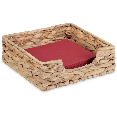 Relaxdays Holder, for 33x33 Napkins, Braided Design, Square Basket, Storage Tray, Water Hyacinth, Natural, Plant fibre, 7.5 x 23 cm