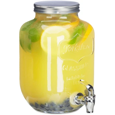 Relaxdays Ice Beverage Glass 3,5 L, Tap, Retro Juice Decanter, Transparent Vintage Lemonade Dispenser, 25.5 x 15 18 cm