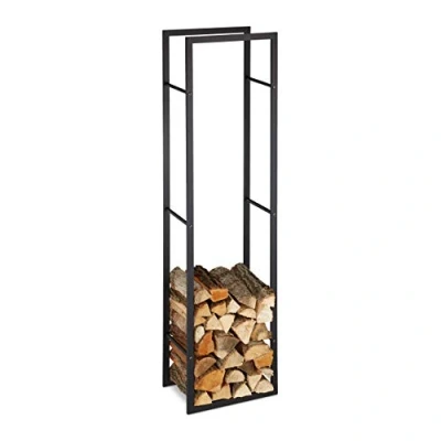 Relaxdays Indoor Firewood Rack, Tall Log Storage Shelf for Fireplace & Oven, Steel, HxWxD: 170x44.5x30 cm, Black, 170 x 44.5 30 cm,10028772